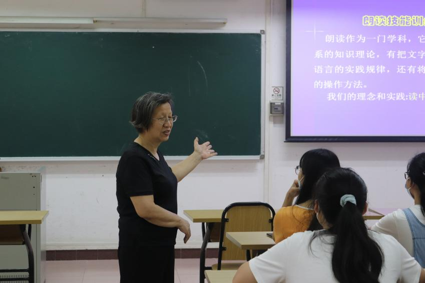 6月29日下午,“大学生语言素养提升计划”第三讲顺利开讲。广州城市职业学院退休教师李萍结合普通话水平测试实施纲要中的朗读作品,从怎么准备朗读、怎么朗读等方面对到场同学进行朗读训练。同学们对朗读时情感、语气轻重的把握有了更深的体会。