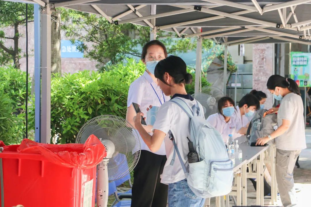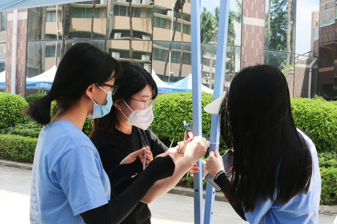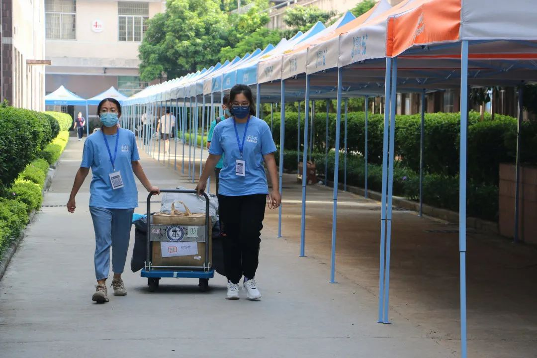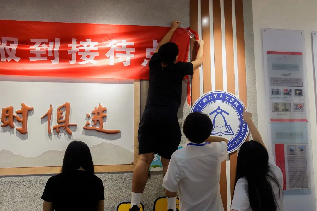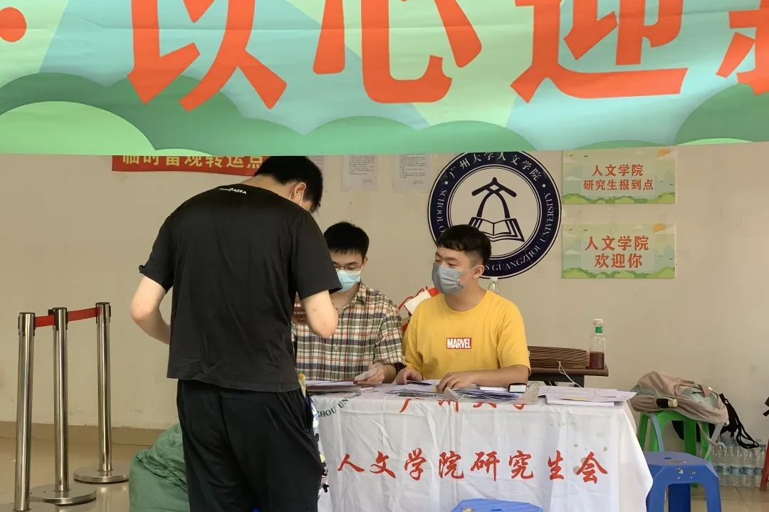 迎新工作组在大学城校区兰苑一栋北侧架空层设置了新生报到接待点,以饱满的热情迎接22级学硕新生的到来。
