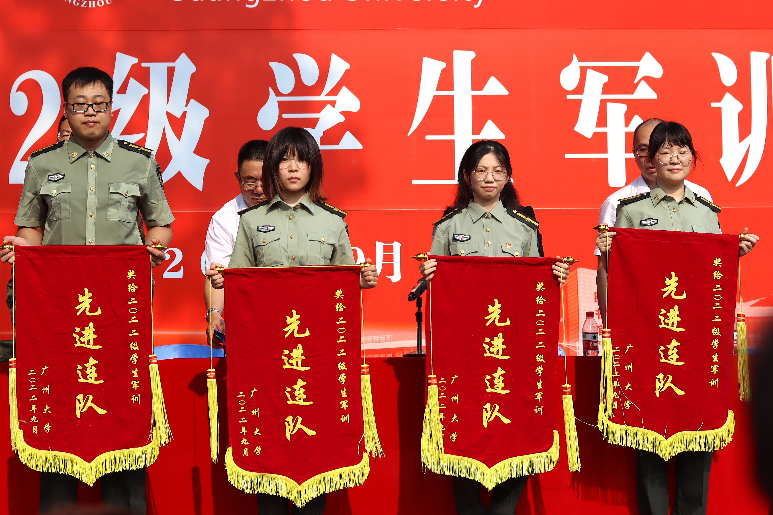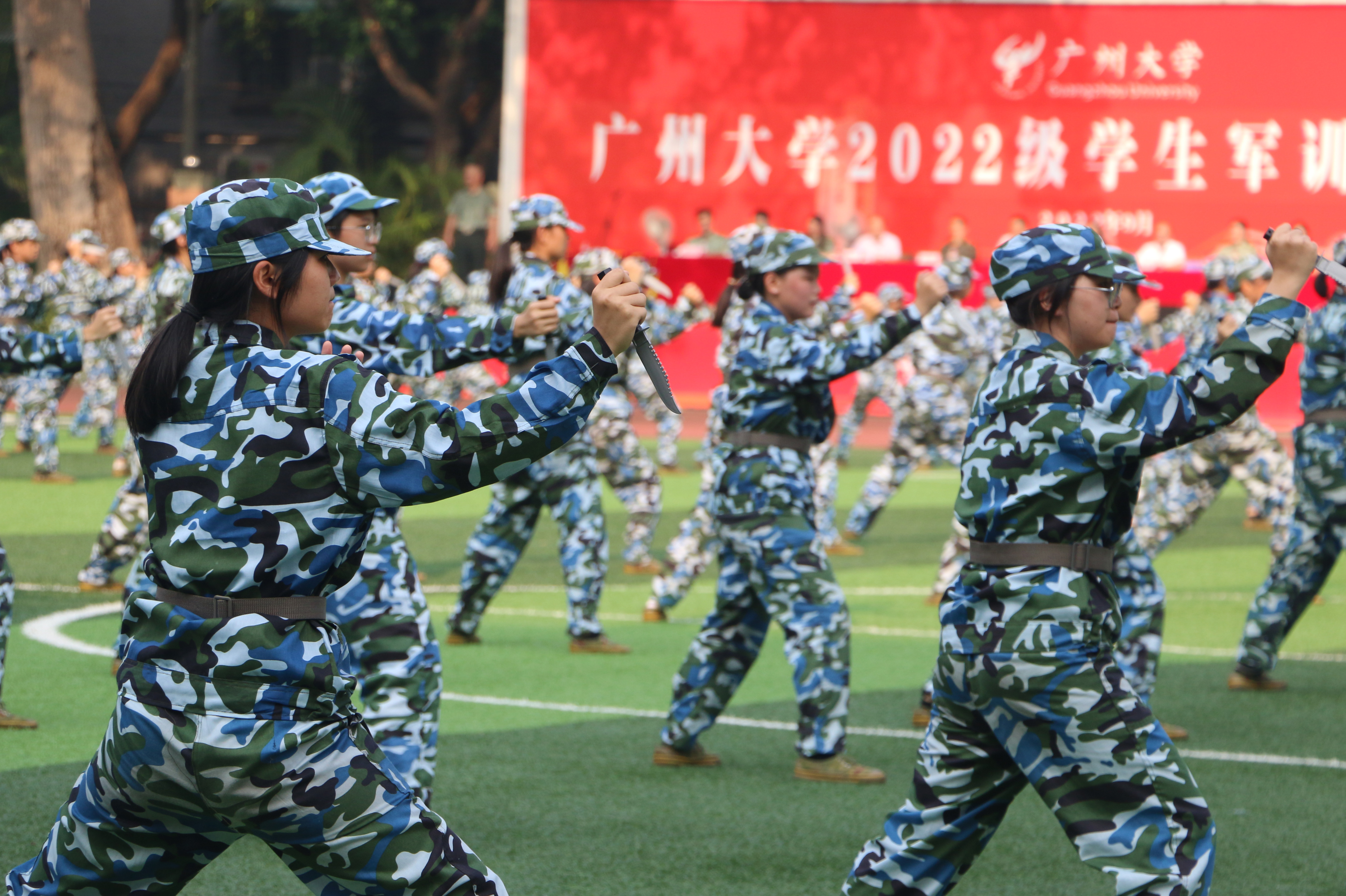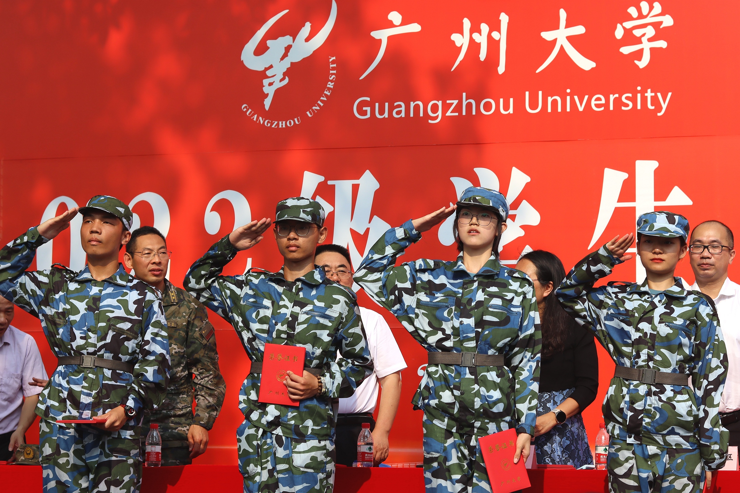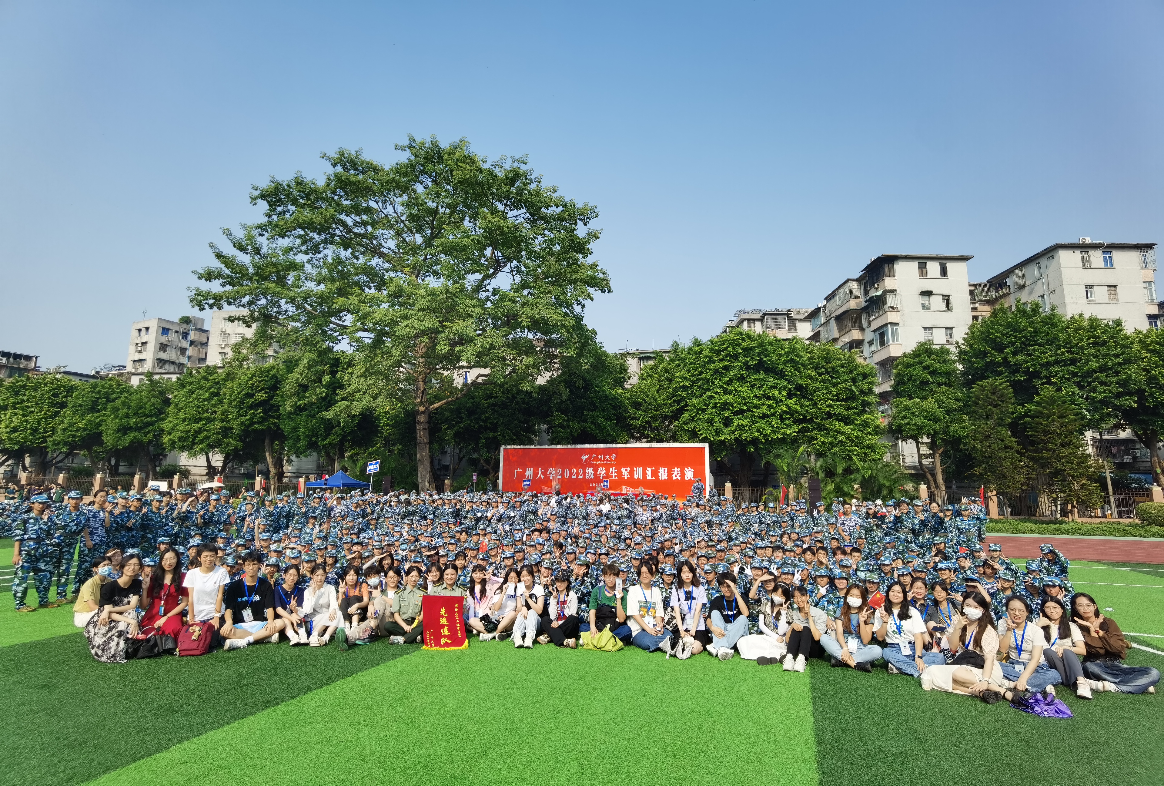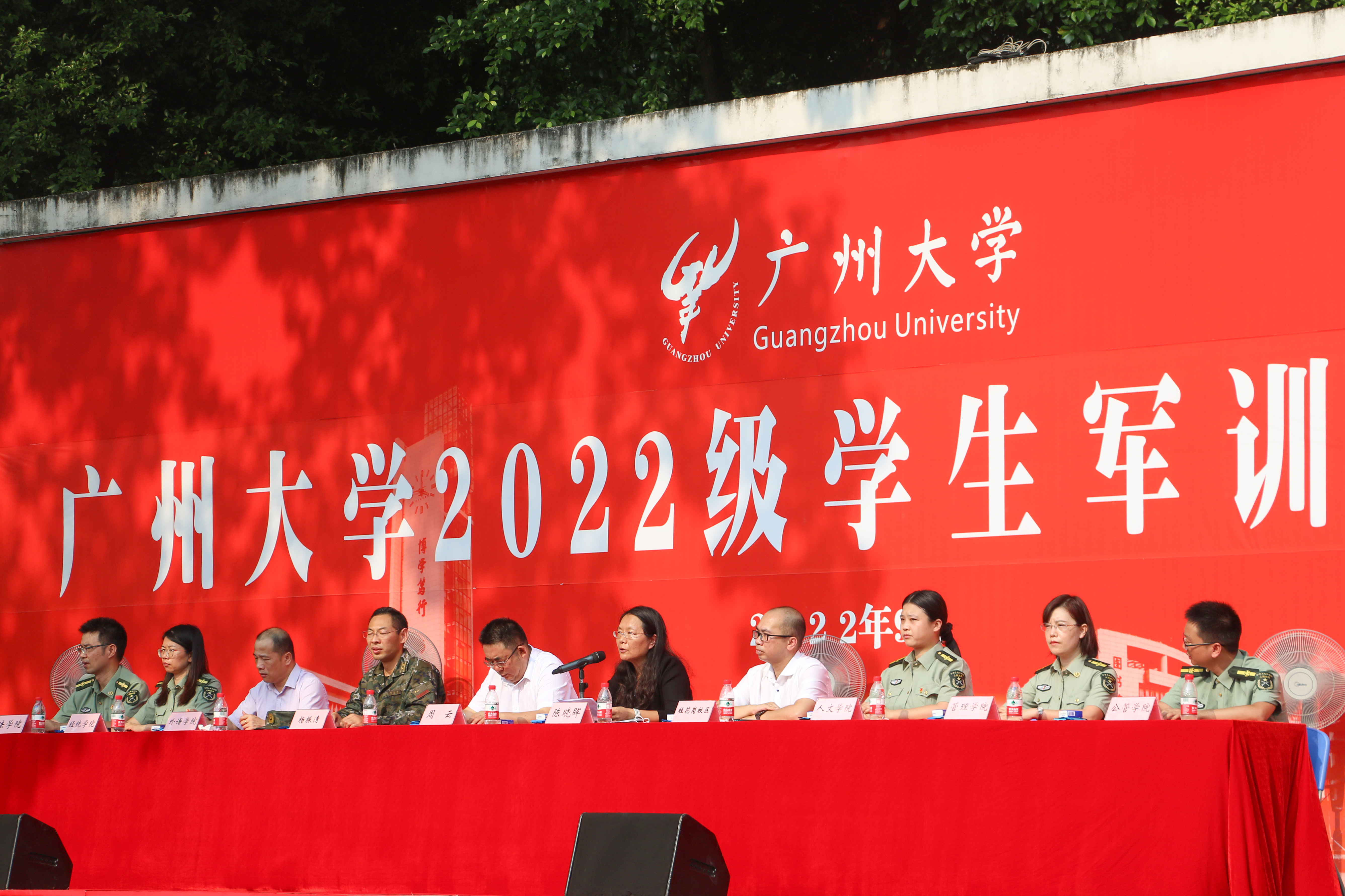 纪委书记陈晓晖同志,新生军训承训单位中国人民武装警察部队广州支队中校大队长杨振清,学校军训领导小组成员,各学院相关负责人,全体教官及2022级新生参加大会。