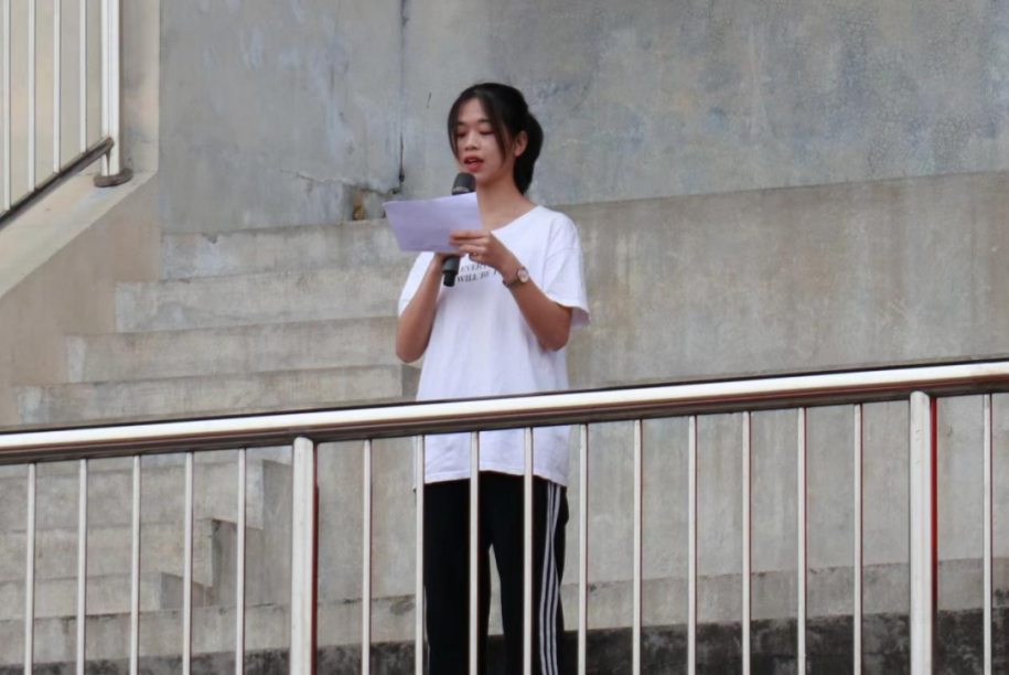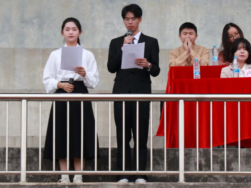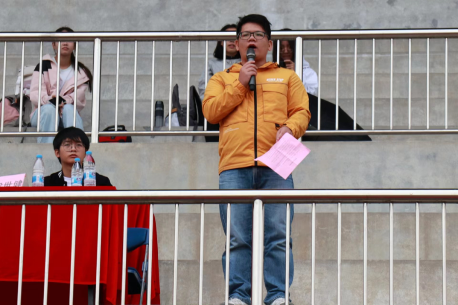 运动员代表汉语232班李欣雨同学进行宣誓,热血的话语激励着运动员超越自我,挑战极限,赛出自我,赛出风采。