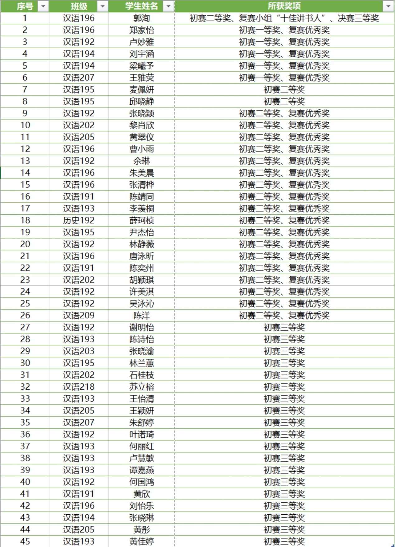 获奖名单