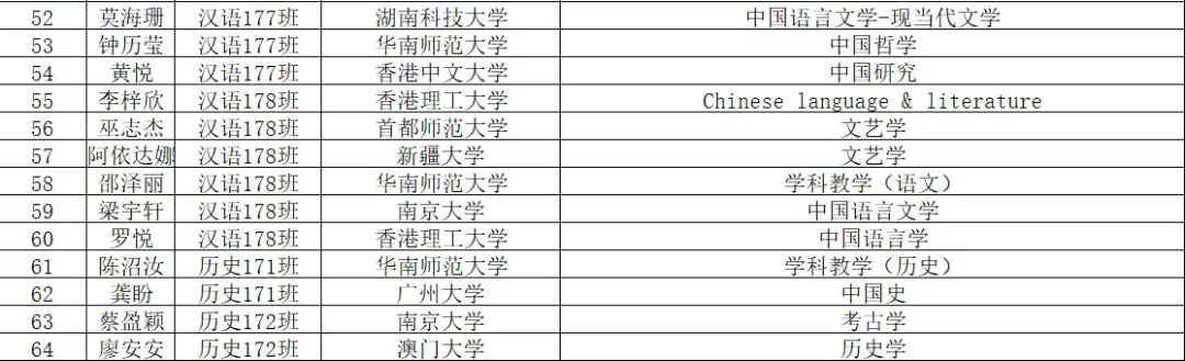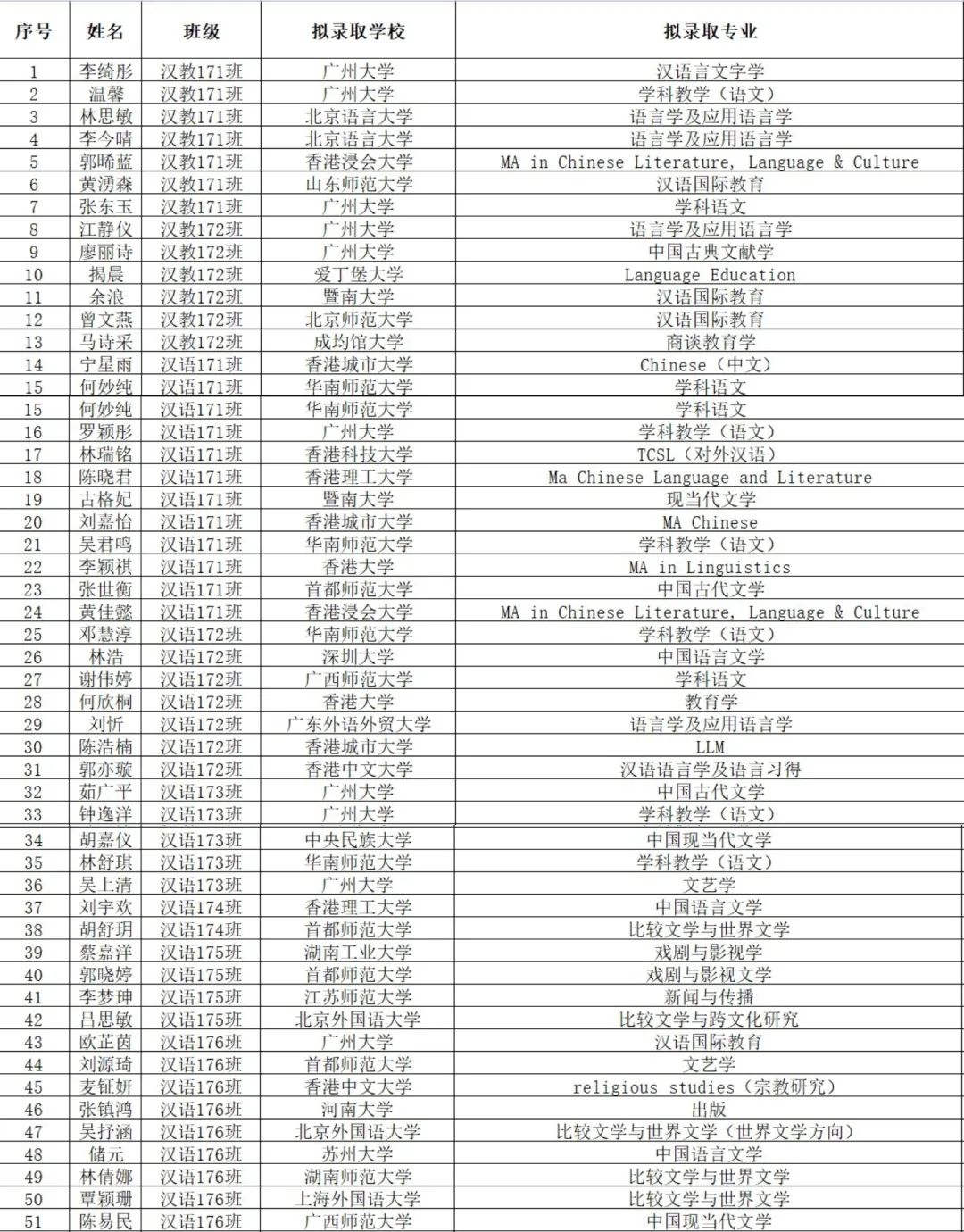 考取国内硕士研究生(含推免)及毕业生出境留学人员名单: