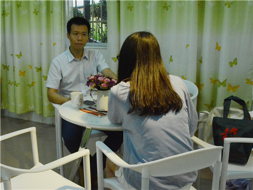 初见骆宏涛师兄时,他穿着一身干净整洁的服装,站在广雅实验中学门口,微笑着招呼我们。当我们走进教师成长驿站时,他亲切地询问着我们想要喝些什么,还热情地为我们泡上两杯香气浓郁的好茶。简单而温馨的教师成长驿站里,相谈甚欢的气息和着醇厚的茶香,一点点蔓延在周围。而师兄为我们细细讲述的不平凡经历,使我们甚为惊奇。