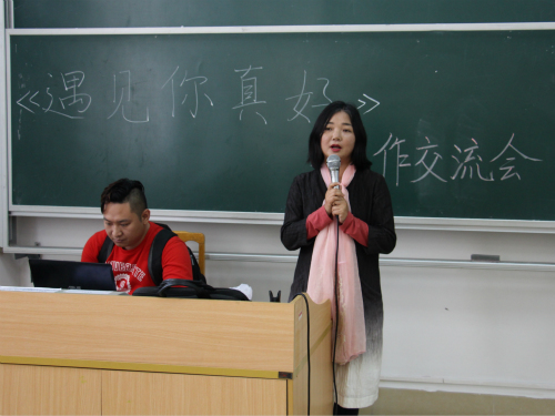 交流会上,师生们一起观看了影片《遇见你真好》。影片讲述了高中校园里三段互为因果的正能量青春爱情故事。影片风格轻快、剧情对话幽默,不时引得观众大笑,现场气氛热烈。