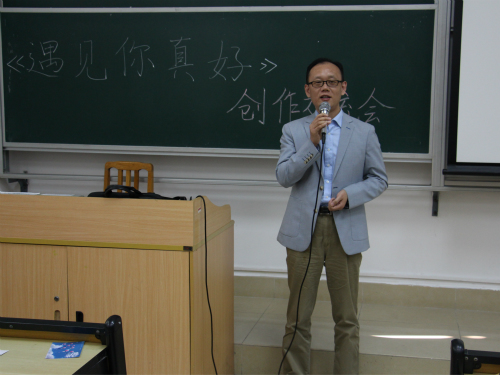 党委书记王琼、党委副书记刘军军最先来到了交流会现场,与孔龙就创作、电影改编、创作发展等问题进行了深入交谈。她们祝贺孔龙在较短时间内就收获了创作硕果,期待他常回母校看看,与同学们分享学习、工作的心得与经验,并祝愿电影上映取得成功。