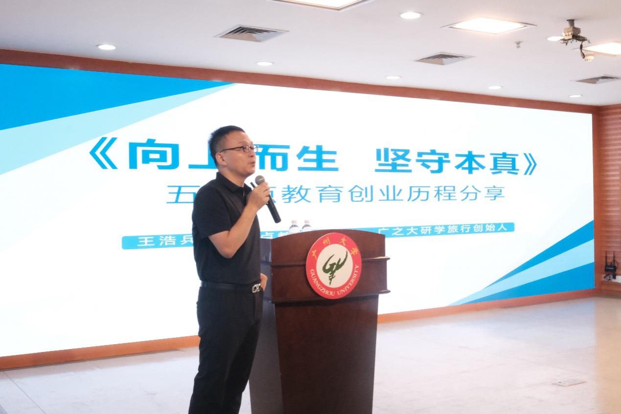 活动最后,王浩兵董事长讲述了自己与合伙人成立“五六点”教育创办的初衷、代表学校参加“创青春”大赛和“互联网+”大赛夺得金奖,借助双赛平台和母校的支持步步搭建起“五六点”教育的框架并获得市场认可这一曲折而充满激情的历程。在面临疫情和“双减”政策的严峻困境时,他们克服重重困难,努力拼搏决不放弃,实现了从零开始艰难转型,调整了“五六点”教育的定位和发展方向,打造智慧教育、校园学等项目。“母校永远会是你最强大的后盾!”在分享中,王浩兵董事长向现场师生展现了乐观积极的拼搏精神和对母校的深厚情怀,表示将持续以实际行动回馈母校。