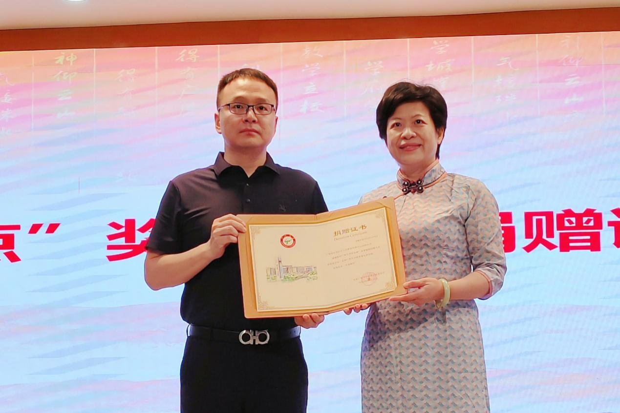 卢捷部长在致辞中强调助学金对学生成长成材起了重要作用,是学校管理的重要组成部分。今天的捐赠颁发仪式是人文精神薪火相传的具体体现,也是学校和校友对师弟师妹的关爱,将对学校发展、学生成长以及社会产生深远影响。并从三个方面对校友捐赠的重要性给予充分肯定:一是“促进与发展”,以王浩兵为代表的优秀校友的成长历程充分证明母校对校友成长的坚定支持,而校友与母校之间的紧密合作将促进学校的进一步发展;二是“感恩与回馈”,校友的感恩之心不仅体现了对母校的深厚感情,也体现了对后辈的殷切期望,这种精神激励将鼓舞广大学子在求学路上奋发向前;三是“续接与传承”,人文精神是校友传承和发扬的重要精神财富,希望广大学子能够传递这份正能量,厉奋发、砥砺前行。致辞结束后,卢捷部长为“五六点”董事长王浩兵颁发捐赠证书,感谢校友对学校发展的关心和支持。