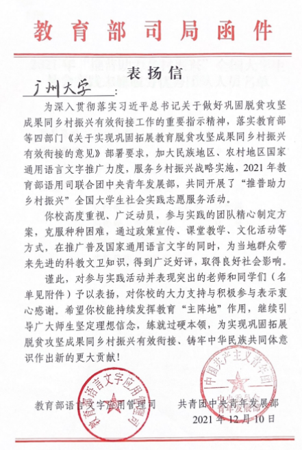 (推普脱贫志愿服务获得全国优秀实践团队称号)