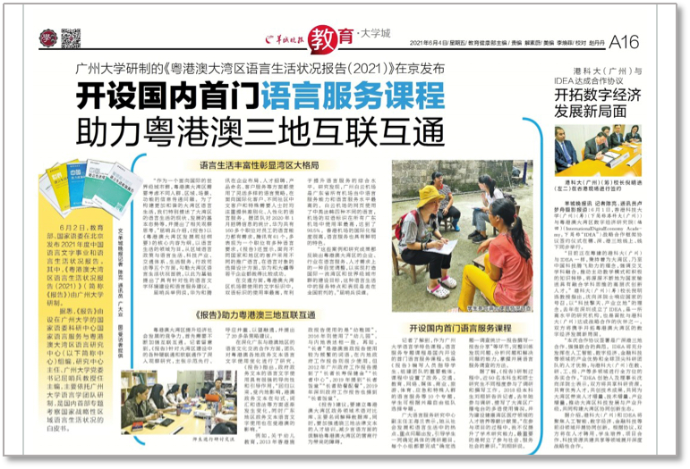 学院组建学生科研志愿者队伍,先后有近百名学生参与《中国语言服务发展报告》《粤港澳大湾区语言圣湖状况报告》等国家语言生活皮书研制,多次获得媒体报道。
