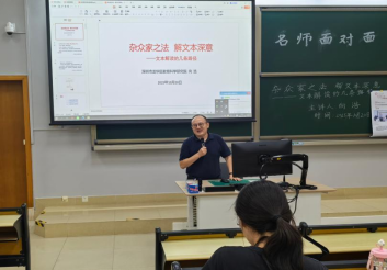 “名师面对面”系列讲座之“杂众家之法,解文本深意——文本解读的几条路径”在文清楼407顺利举行。本次讲座特邀深圳市龙华区教育科学研究院副院长、正高级教师向浩主讲,丁之境教授担任主持人,为汉语言文学专业师范生带来了一场兼具理论深度与实践价值的专题分享。