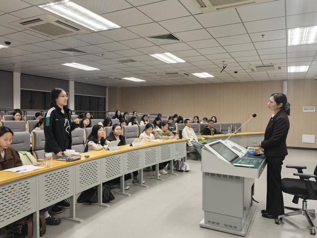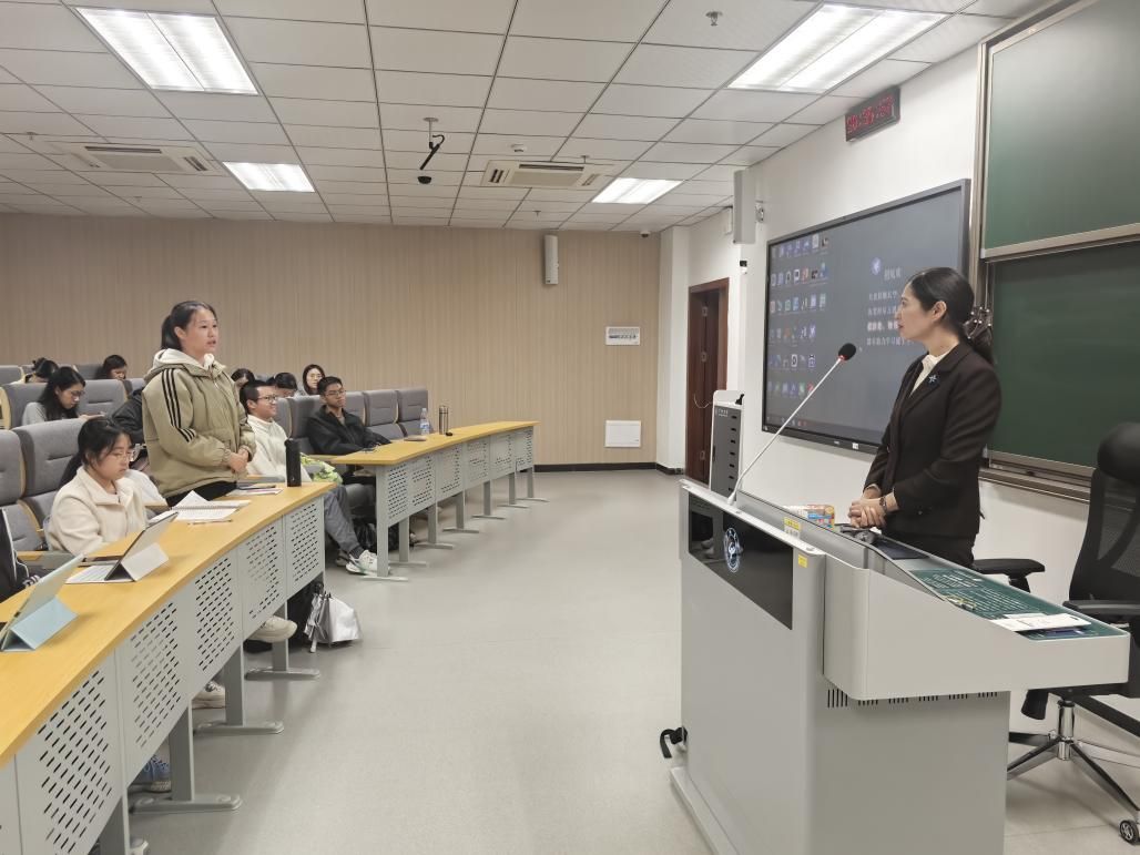 互动环节中,多位大二、大三同学踊跃发言,分享了讲座在文本解读层面带来的收获、对教学与考试融合的启发,以及对未来职业发展的思考,并就“如何将教学灵感系统转化为完整的教学设计”等问题与夏老师进行了深入交流。