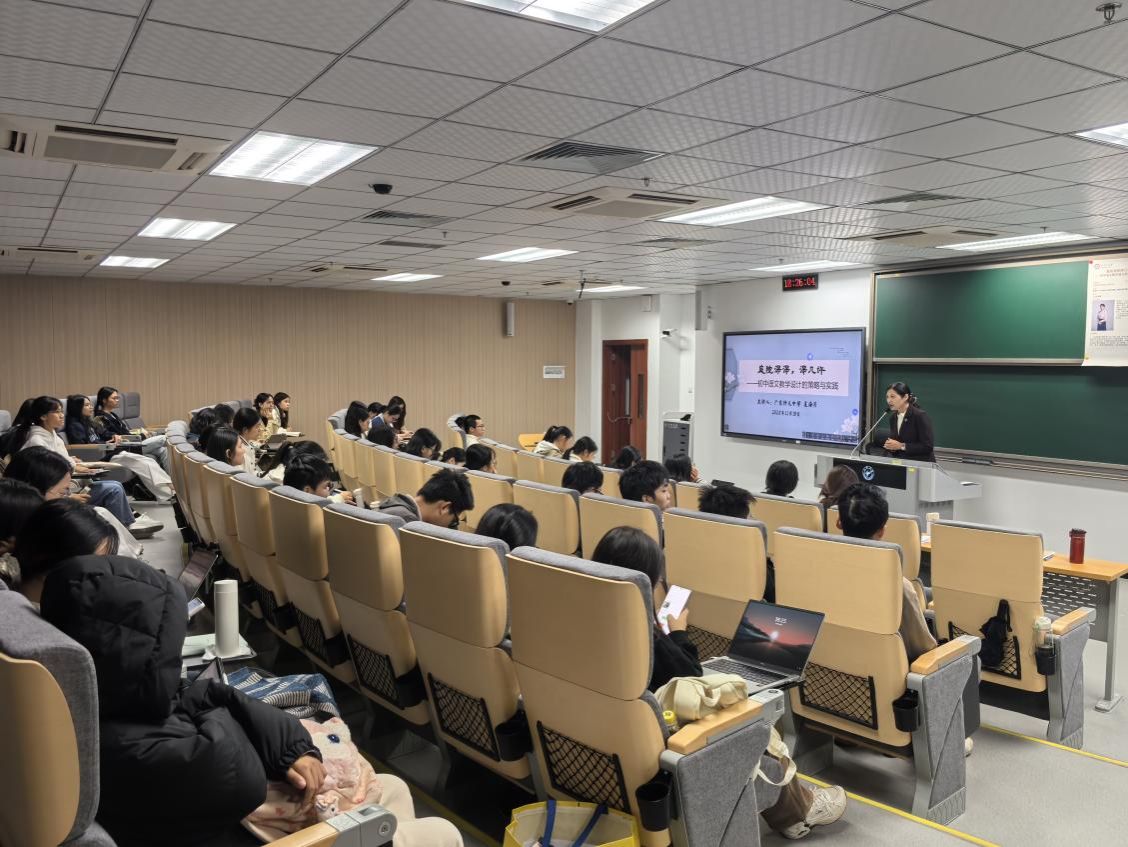 “名师面对面”系列讲座在文渊楼204成功举办。本次讲座以“初中语文教学设计的策略与实践”为主题,特邀省学术技术带头人、广东仲元中学优秀教师夏海芹担任主讲,丁之境教授主持,为汉语言文学专业的师范生带来了一场内容翔实、启发性强的教学盛宴。