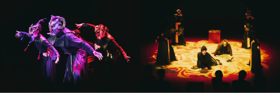 话剧《登楼客》探索非遗傩戏的当代剧场转译,将傩面、仪式化肢体等融入现代叙事,重构传统美学。该剧借少年大勇沦为资本傀儡的悲剧,让傩戏成为解构人性异化的载体,既活化非遗生命力,又赋予传统艺术解读当代社会议题的新可能,实现非遗与现代剧场的深度对话。