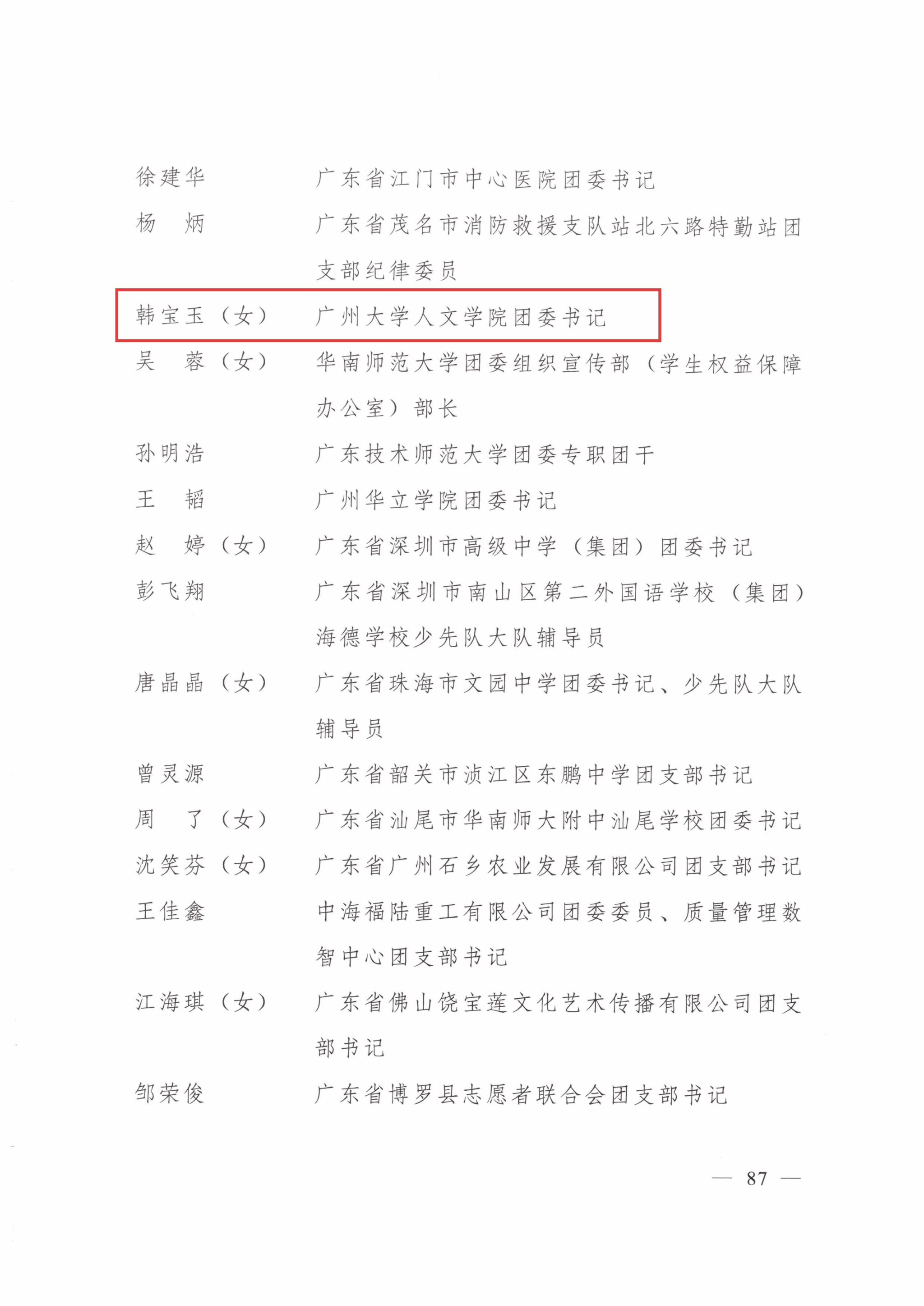 团委书记。作为一名深耕共青团工作近十年的基层团干,她将“一键呼叫宝玉”打造成为服务青年的响亮品牌,用105℃的热爱在实践育人的“湾区试验田”里书写了动人的青春答卷。