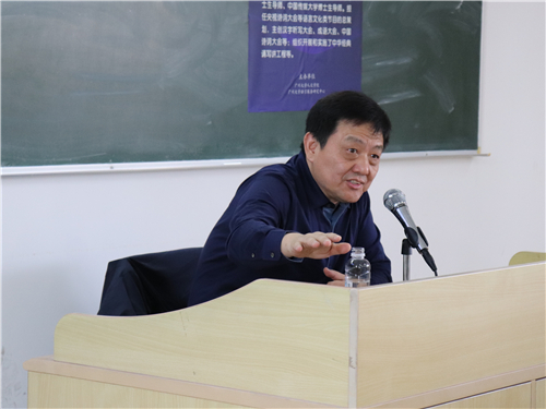 讲座在姚喜双教授的朗诵中走向尾声。姚喜双为在场师生朗诵了曹操的《观沧海》、《龟虽寿》。字字句句,铿锵有力;在场师生,沉迷其中。姚教授言传身教,对优秀传统文化的中国实践与中国经验进行剖析,赢得现场掌声连连。