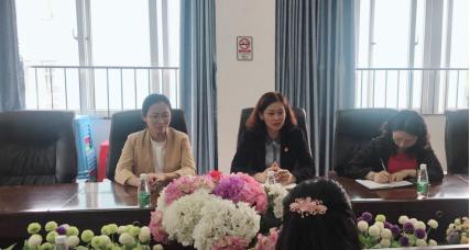 接着,香雪小学教导处朱钻弟主任就实习生在校实习情况做了总结汇报。朱主任说,实习生们谦虚、谨慎、敬业,对待工作认真负责,遵守实习纪律,在实习期间认真跟着指导老师做好课堂教学的学习,还主动帮助学校多次参与大型活动的工作,赢得了师生们的一致好评,也得到了学校领导的充分肯定与认可。朱主任表示,实习生的到来,给学校教育教学工作带来了新力量,成为老师们的好助手,并且希望他们能够通过实习有所收获,找到理想的工作,成为新一代教育工作者。
