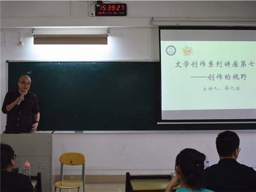 (本网讯)11月8日下午,以“创作的视野”为主题的文学创作系列讲座第七讲于文清楼706室成功举办。此次讲座的主讲人是出版过许多精品著作并且荣获国内外多项文学创作奖项的薛忆沩老师。讲座由副院长禤健聪老师主持。