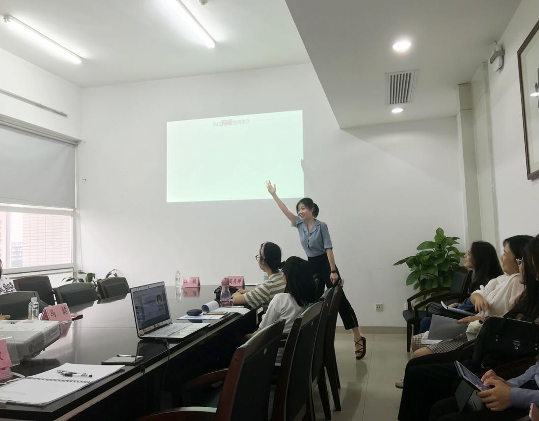 高良婵同学强调了网络用语在教学过程中需要区分受众,不同的受众需要因材施教,并讲解了在教学中可以使用的方法,如词群教学法、语境教学法等五种教学方法。前来参加沙龙的同学们纷纷点头认同。江婕同学倡导将教学与网络用语相结合,拉近师生间的距离,增添课堂趣味性。最后,高良婵同学对于本次分享做了言简意赅的小结,表明网络语言在教学过程中应当传递正能量,并需要拿捏有度的使用。