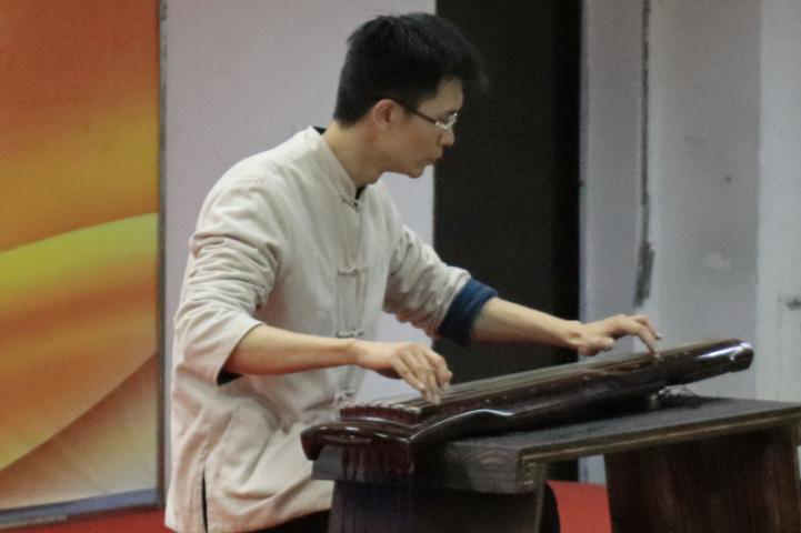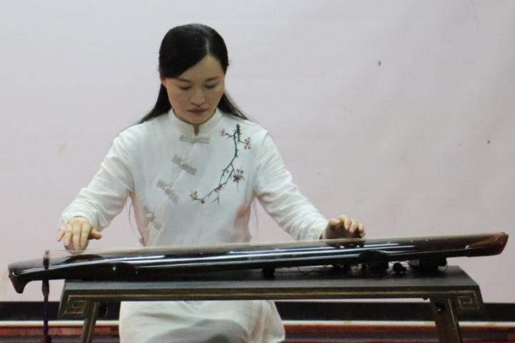 随后邓海涛老师与陈燕华老师为在场师生带来了精彩的即兴表演,在委婉低沉的琴声中,邓老师朗诵了王维的《送元二使安西》一诗,展现了古琴诵读的魅力。