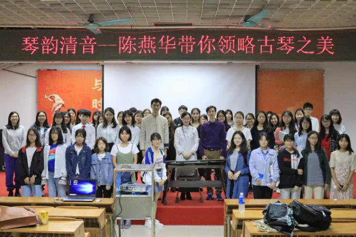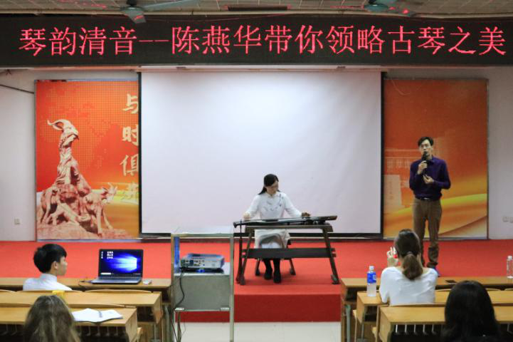 5月7日下午,著名古琴家、研琴师陈燕华老师与听燕琴院邝延毅老师莅临成人电影 图书馆一楼讲学厅,举办“琴韵清音”为主题的讲座,为我们讲述古琴历史与古琴艺术欣赏之道。本次活动由成人电影 岭南文化艺术研究院主办、成人电影 、广府文化研究中心协办,成人电影 邓海涛老师与一百多名同学们一同参加了本次讲座。