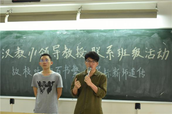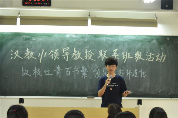 4月22日上午,以“故枝吐青百书繁,领异标新师道传”为主题的领导教授联系班级暨经典百书导读活动于文新303顺利开展,院党委书记王琼老师和汉教171班的同学参加了本次活动。
