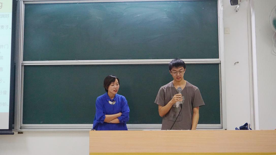 紧接着,侯丽娴博士带领同学们一起阅读并分析了《雅歌》的第一、二章。在这一过程中,同学们踊跃发言,提出了自己对文中隐喻的不同见解。在初步掌握了文本细读的方法后,侯丽娴博士邀请同学上台朗读诗歌,同学们开始自行尝试对《雅歌》的第四章进行文本细读。针对《雅歌》第四章的内容,侯丽娴博士提出了这样几个问题:第四章采用的是什么叙述视角?文中的隐喻里包含了哪些颜色?文中用什么来比喻美貌和性?