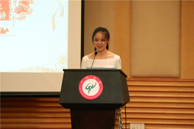 之后,19级新生代表黄梓渝同学上台发言。她表示来到大学希望自己以一种全新的心态迎接大学生活,更要时刻牢记“博学笃行,与时俱进”的校训,将青春用来奋斗。