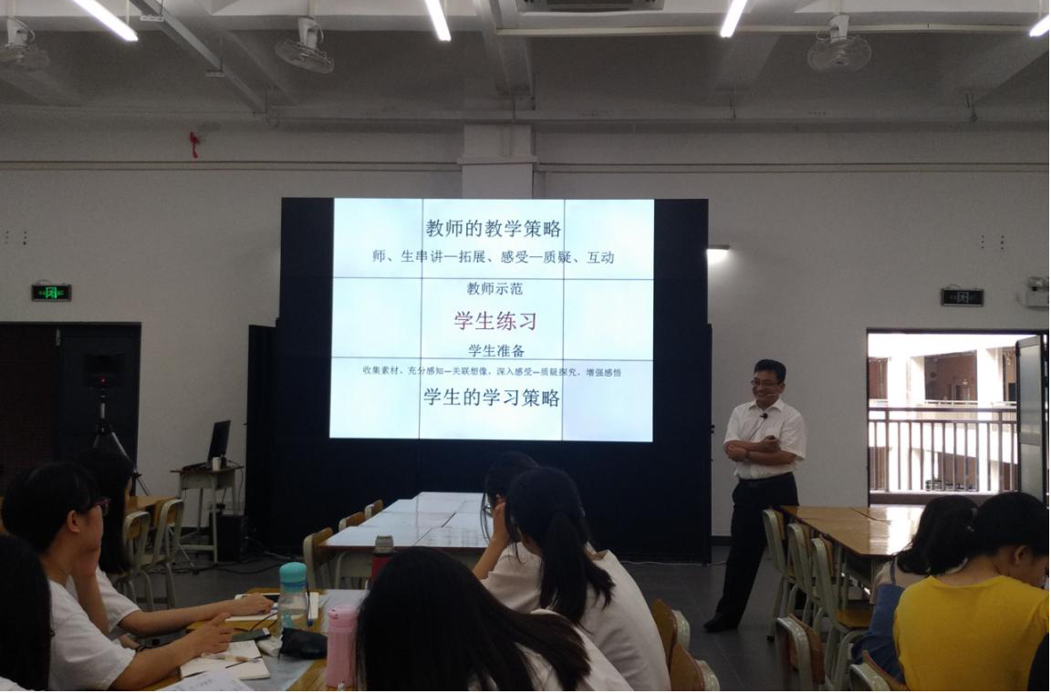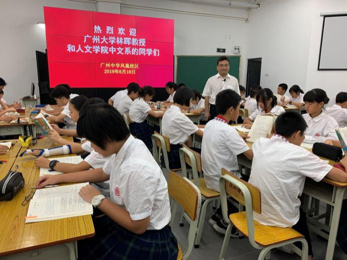 语文教育实践工作坊(第二期)全体学员、18级学科教学(语文)教育硕士在林晖老师带领下,来到广州中学凤凰校区,走进特级郑文富老师精彩的语文课堂,共享“基于资源的阅读教与学”,近距离感受郑老师语文教学的魅力。