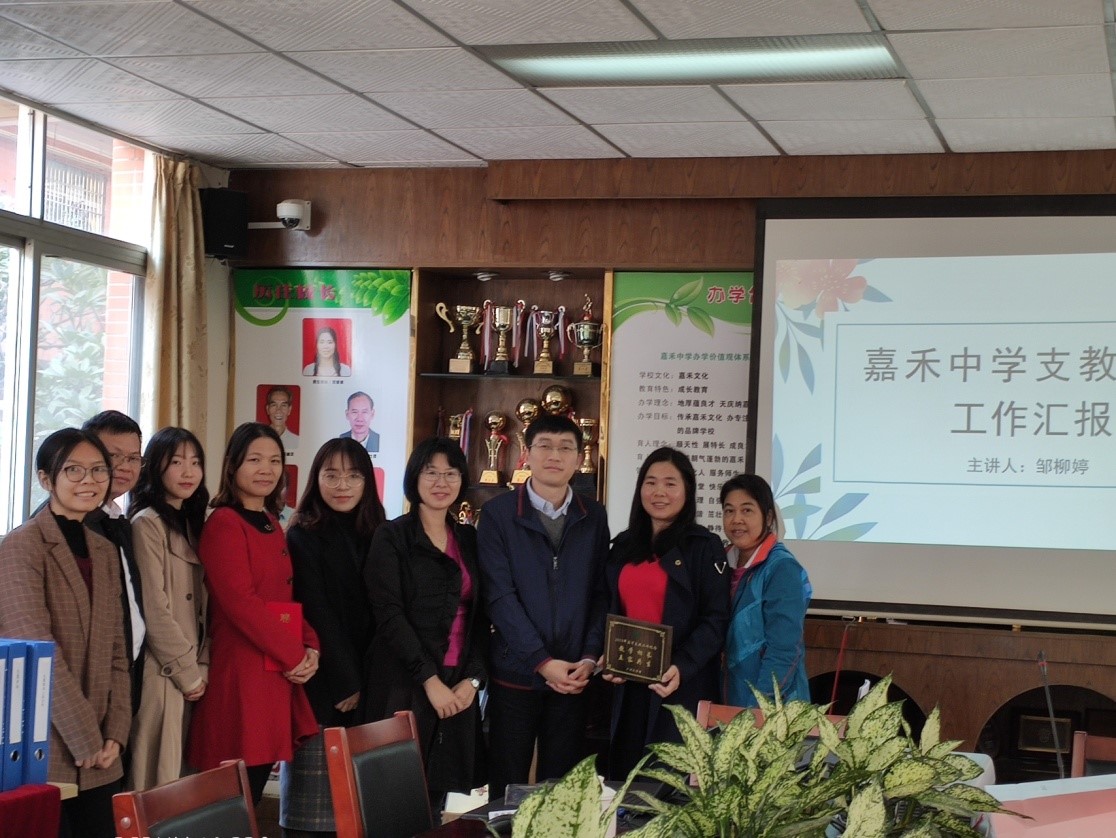 加禾小学黄海铭校长、余丽群副校长以及支教生指导老师龙春逢主任、周金燕主任、梁志慧老师,嘉禾中学范智娟校长、黄庆文主任及支教生指导老师代表熊育华老师分别参加了两所学校的工作交流活动。