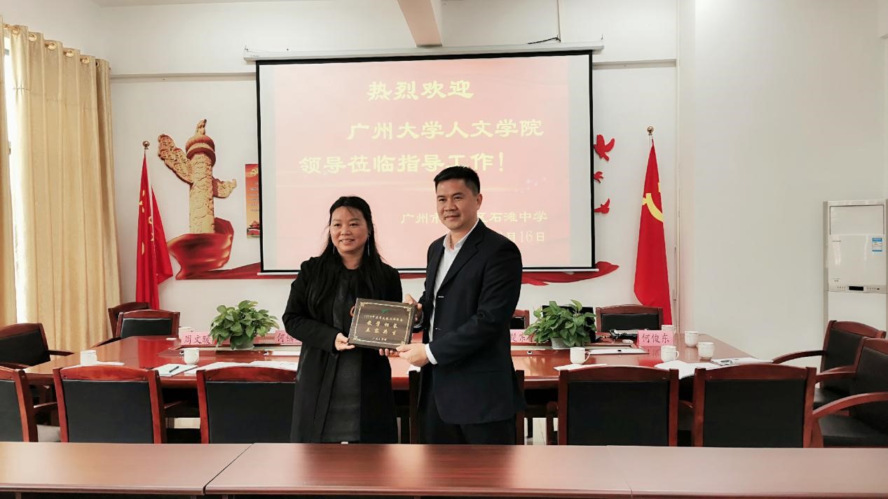刘军军副书记分别向石滩中学和实验中学赠送了2019年实习支教工作纪念牌,以“教学相长,互容共生”互勉,并合影留念。
