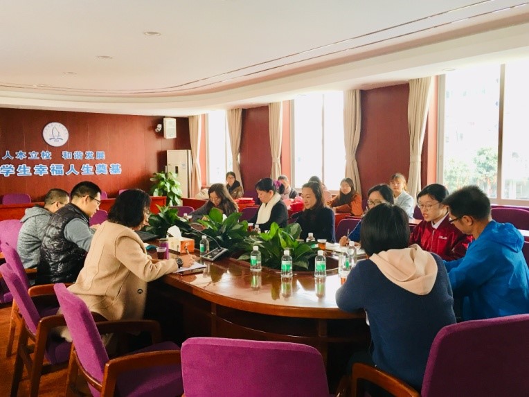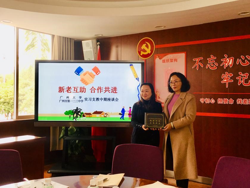 广州市第一二三中学副校长项厉老师、教务处主任蔡穗斌老师、教导处翁宗琮老师以及各位实习生指导老师、广大实习生参加了本次实习支教中期座谈会。