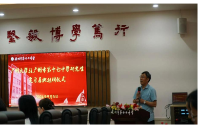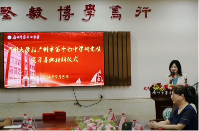 教育硕士(学科语文方向)实践基地挂牌仪式暨研究生入校安排活动在广州市第十七中学会议室隆重举行。广州市第十七中学莫明珉校长、邓雪玲副校长、科研处张微主任、黄晓霞科长、全体实习指导老师,我院王琼书记、李茂增副院长、张立副书记、温小军老师以及全体实习生出席仪式。仪式由广州市第十七中学教务处张陈主任主持。