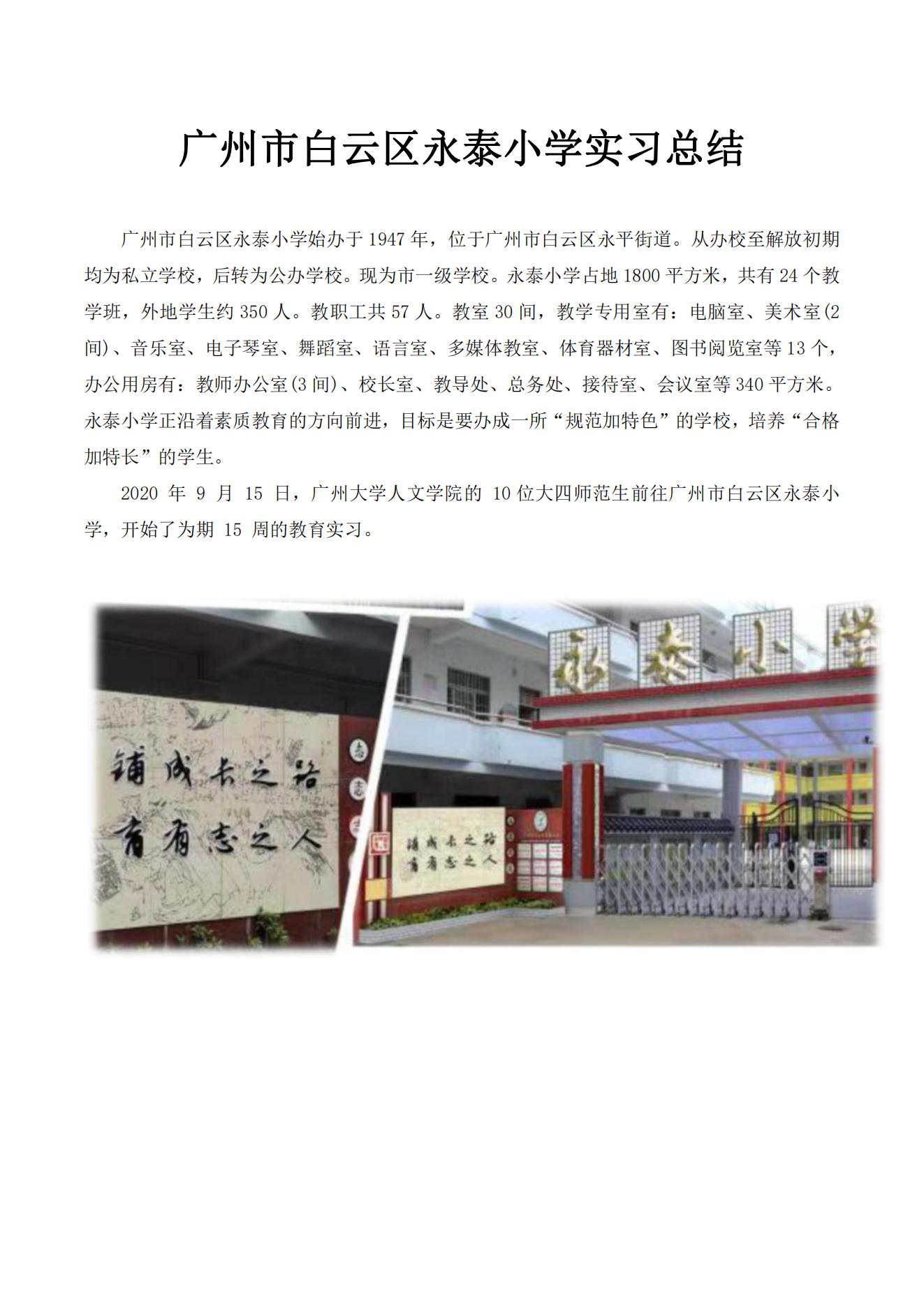 广州市白云区永泰小学实习总结