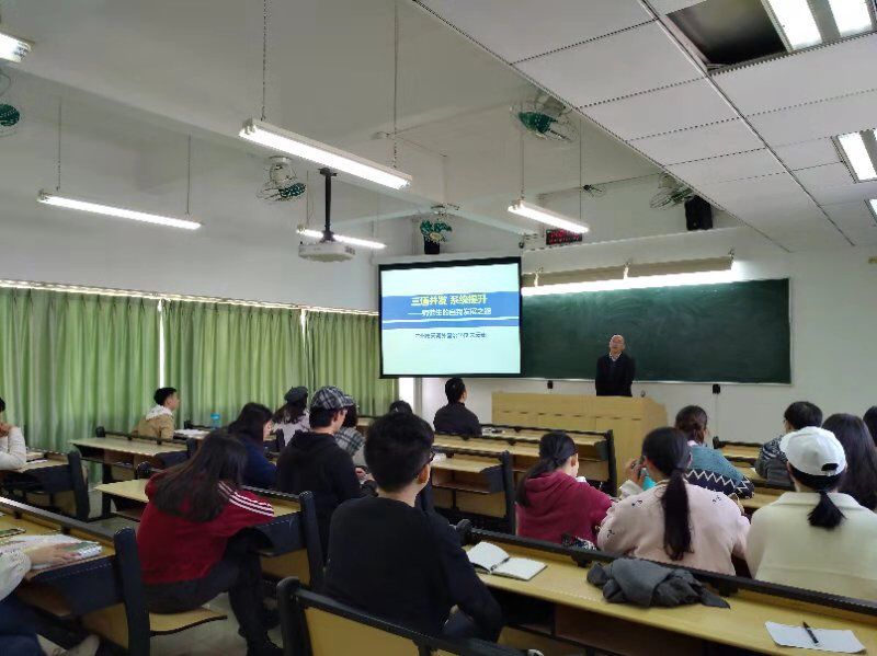 朱云志老师本次讲座的题目是:“三面并发、系统提升——师范生的自我发展之路”,他结合自己多年来从事历史课程教学的实践经验和自己成长的经历,全面分析了如何才能上好一节高质量的历史课。朱老师认为,要想上好一堂优质课,就要有优秀的教学设计,而优秀的教学设计则需要分三步走。首先是清晰准确、符合学情的设计理念,在此基础上进行目标设定,其中包括内容标准、教材分析、学情分析及教学目标和重难点,然后才能“目标达成”。讲座过程中,朱老师还和同学们分享了他如何获取教学资源的方法。