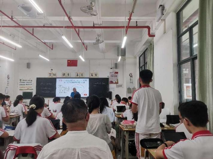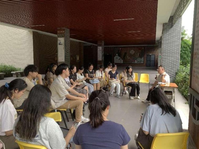 第七期语文教学实践技能工作坊全体成员在丁之境教授的带领下前往广州中学,跟随郑文富老师的脚步揭开培育学生语文思维架构的神秘面纱。