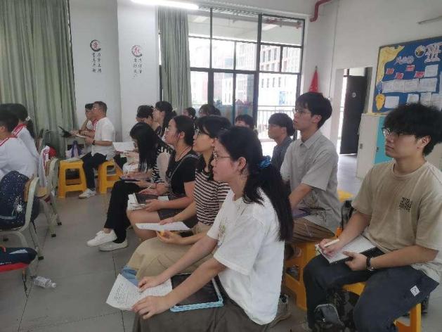 本次听课活动共分为两个部分——实地听课以及丁之境教授、郑文富老师进行教学指导。围绕“整体‘自’学之合作探究”的教学方法,郑老师对两个班级的同学授课,为我们展示了思维架构在语文学习中的重要作用,精彩的课堂令明日之师们拍案叫绝。
