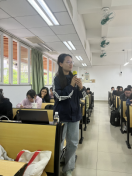 在互动交流环节,同学们就教学技能和应聘等方面提出自己的困惑,郭老师也结合自身经验、社会现状等作出具体而切要的解答。