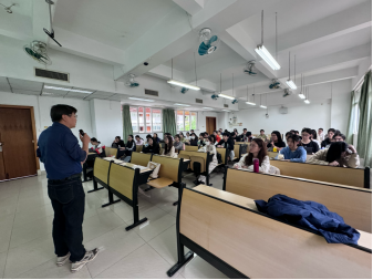 讲座开场,凌彦老师简要介绍了郭伟老师及其主讲的主要内容。其后,郭伟老师对在场的学生提出建议:利用大三宝贵的时间,预先做好学习和求职等方面的职业生涯规划,为更好地向教师角色转变作准备。