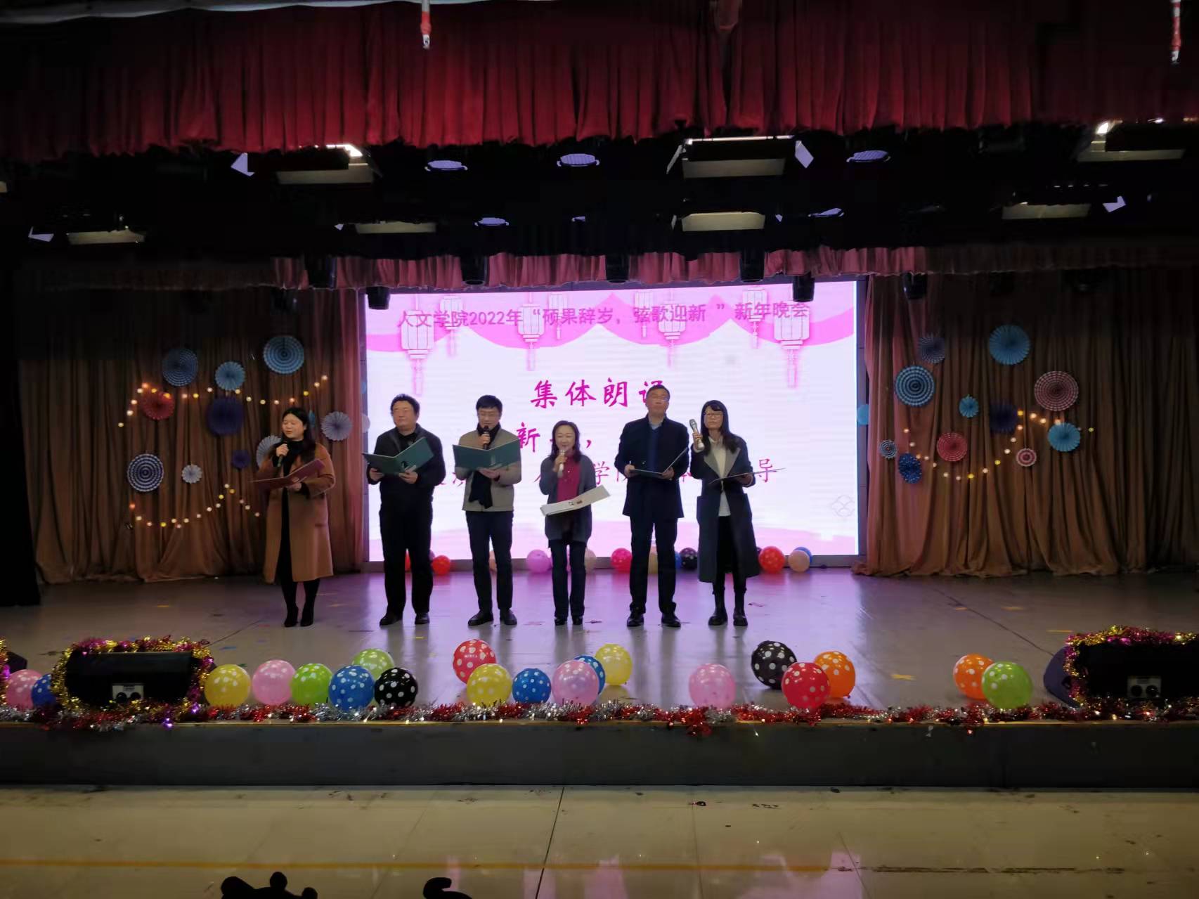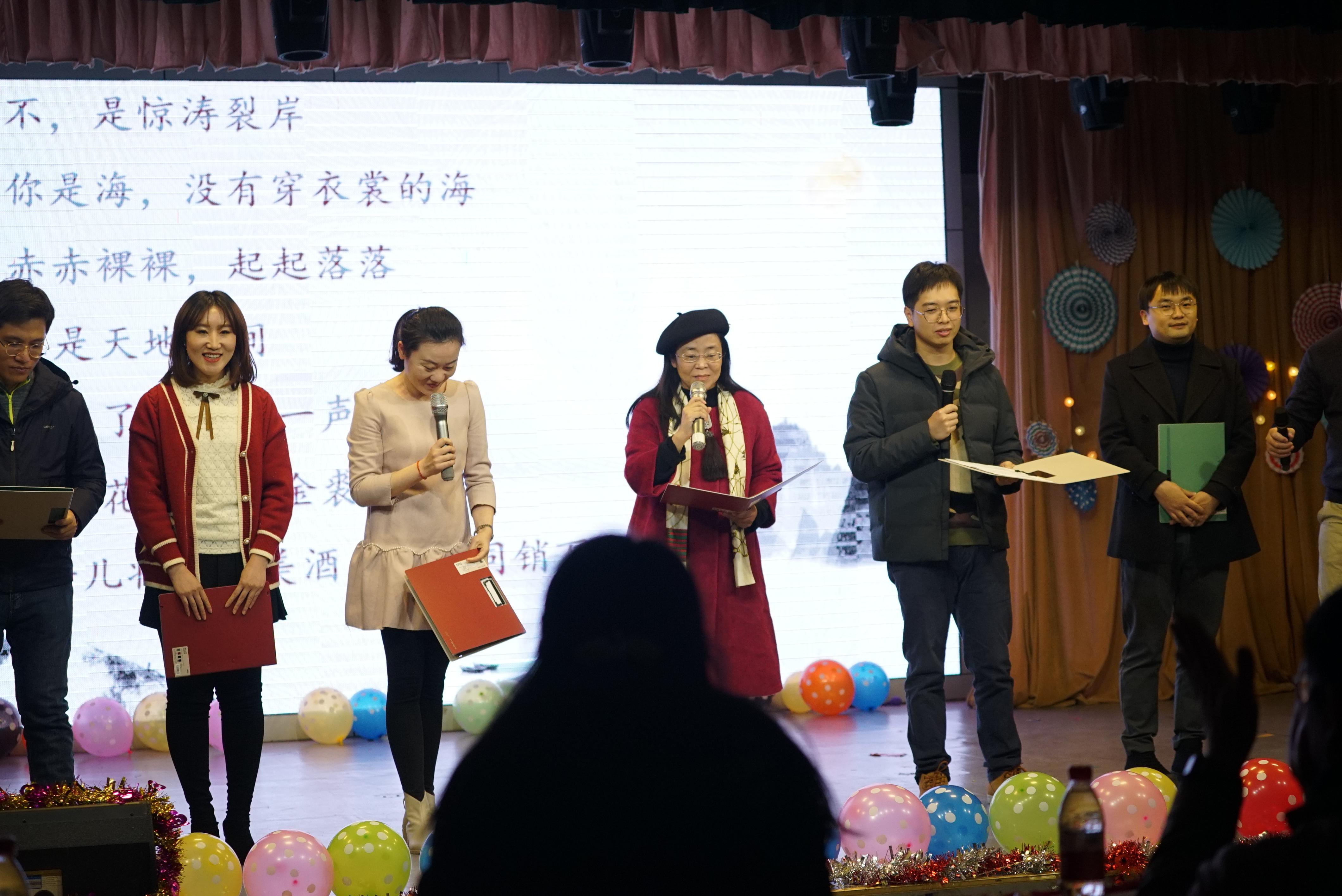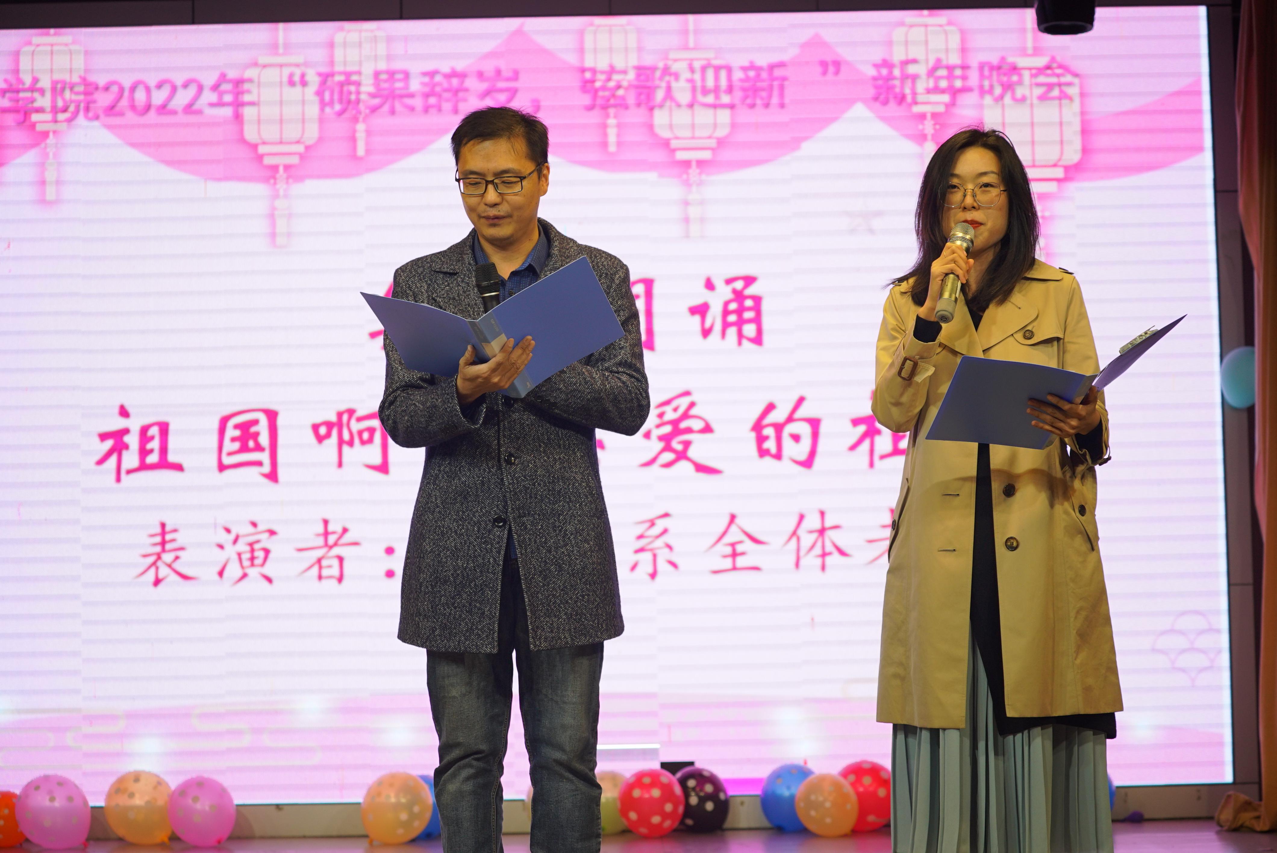 全体院领导也带来了自己精心准备的诗朗诵《新年,你好》,朗诵通过汪国真的现代诗,深情寄托了学院领导对大家的祝福,祝福祖国繁荣昌盛,祝福学院更创辉煌。