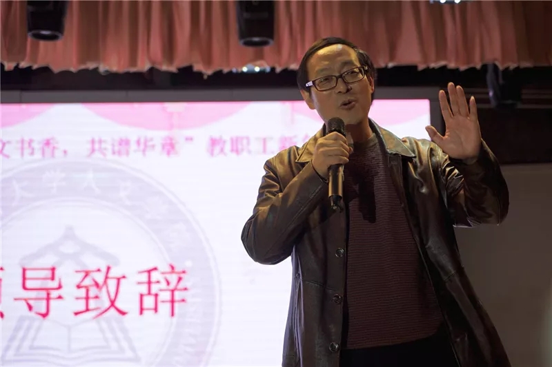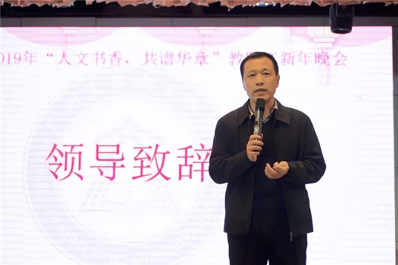 院长纪德君老师分别上台致辞,张强老师首先感谢了各位老师在2018年的辛劳工作为建设高水平大学作出的积极奉献,希望大家尽情享受此次晚会,祝愿各位老师在新的一年里再接再厉,共创辉煌!