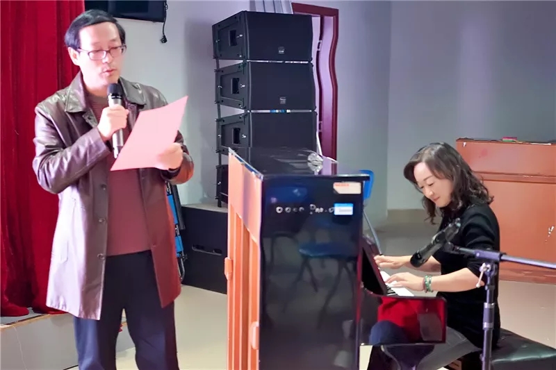 历史系教工温文尔雅的王睿老师联袂优雅娴静的徐霞辉老师弹唱了一曲《初恋的地方》,现场彷如洋溢着一股暖暖的爱意气息。