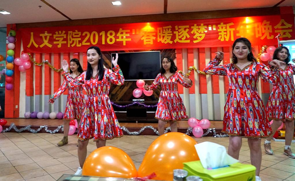 新疆预科班的《西域风情》民族舞热烈开场,然后,彭应翃老师可爱的女儿刁茁小朋友为我们演唱了一曲稚趣万分的儿歌《么么猫》,赢得了师生们热烈的掌声。
